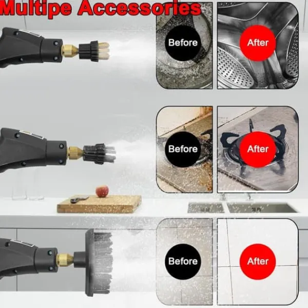 6 justerbara hastigheter & 3 munstycken: Anpassa ångtrycket efter behov med 3 olika borsthuvuden för mångsidig rengöring.