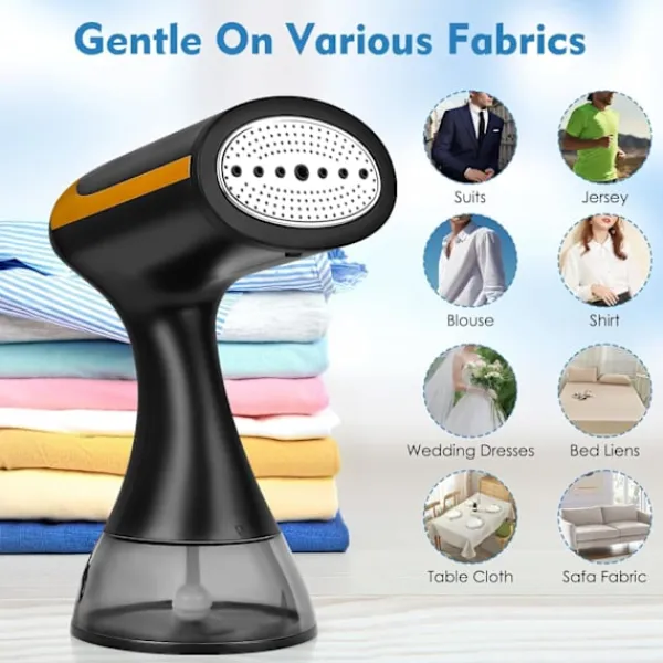 Mångsidig Tygkompatibilitet: Vår plaggångare slätar ut rynkor på olika tyger som bomull, linne, polyester, chiffong, ull, siden och mer, vilket gör den perfekt för alla klädbehov. Den vitaliserar också hemtextilier, inklusive gardiner, soffor, mattor och sängkläder, vilket ger ett rent, fräscht utseende med minimal ansträngning.