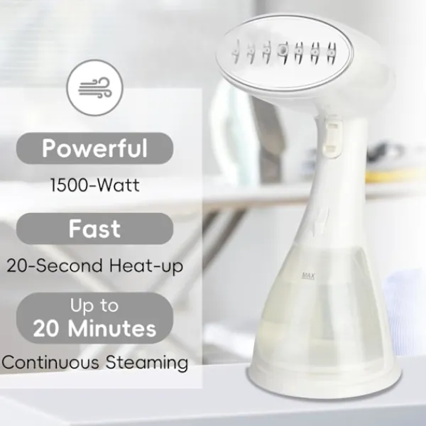 【Högkapacitets Ångprestanda】:Denna ångare har en praktisk 300ml avtagbar vattentank som ger 15 minuters kontinuerlig ångkraft – tillräckligt för att fräscha upp upp till 10 plagg per påfyllning. Den optimerade designen minimerar avbrott för vattenpåfyllning, vilket sparar upptagna användare värdefull tid samtidigt som den bibehåller effektiv rynkborttagningsprestanda.