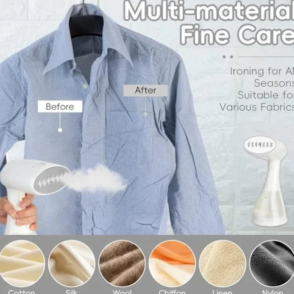 【Garanterat Säker för Alla Tyger】:Vårt innovativa säkerhetssystem förhindrar överhettning, vilket gör att du tryggt kan ånga plagg i alla vinklar – oavsett om de ligger plant på en yta eller hänger vertikalt. Designad för professionella resultat, tar denna högpresterande ångare enkelt bort rynkor från bomull, linne, polyester, chiffong, ull och känsliga tyger.
