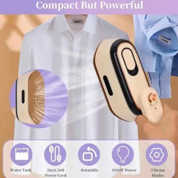 【Resestorlek på bärbar ångplanka】den vikbara handtagsdesignen på den bärbara ångplankan ger bekvämlighet för förvaring. Den inkluderar även ett behållaretillbehör för att underlätta vattentillförseln