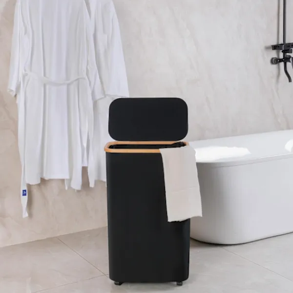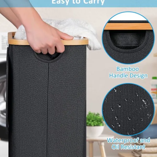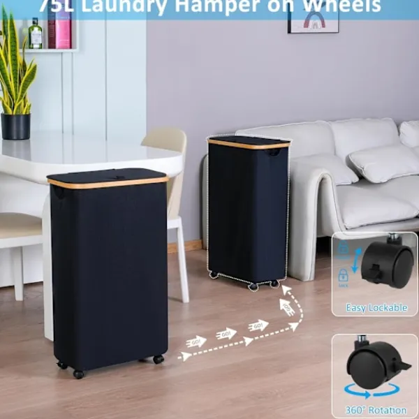 【Tvättkorg med hjul】: Den smala tvättkorgen är utrustad med 4 hållbara, multidirektionella hjul som glider lätt över trägolv, kakel eller matta. Hjulen har bromsar för att hålla korgen på plats, och den är lätt att flytta även när den är tungt lastad. 【Kapacitet】: Den hopfällbara tvättkorgen mäter L*B*H: (40,5 cm x 33 cm x 75 cm). Den smala designen är perfekt för att passa in i trängre utrymmen runt huset. 【Avtagbar innerpåse】: Innerpåsen i tvättkorgen är säkrad med kardborreband, vilket gör den lätt att ta bort och bära. Den är också bekväm att tvätta; du kan enkelt ta ut innerpåsen och lägga den i tvättmaskinen. 【Högkvalitativa material】: Tvättkorgen har en bamburam med ett handtag på toppen för enkel lyftning. Tvättkorgen med lock förhindrar att damm kommer in och blockerar lukter. 600D Oxford-tyg gör den stark och hållbar, även för långvarig användning. [Lätt att installera och fälla ihop] Det är mycket enkelt att installera tvättkorgen med lock och det tar troligen bara några minuter om du hänvisar till instruktionerna på förpackningen. Stängerna kan också tas bort när de inte används, och korgen kan fällas ihop för enkel förvaring.