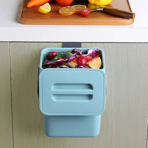 PRAKTISK I KÖKET: Komposthinken har den perfekta storleken för att placeras på din arbetsyta för att samla äggskal, tepåsar, frukt- och grönsaksskal, rester, kaffesump och mer. Den kan förvaras antingen på arbetsbänken eller hängas på skåpdörren. Tar inte upp golvyta.
