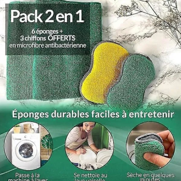 EFFEKTIVITET MOT SMUTS: Föreställ dig en produkt som verkligen hjälper dig med hushållssysslorna. En effektiv antibakteriell mikrofibersvamp, disken blir ren på ett ögonblick, ytorna skiner med en enda gest. Ditt hem är enkelt rent. Du behöver inte längre köpa en skursvamp i snabbköpet. Gör en insats för din plånbok och för miljön genom att tvätta dina svampar i diskmaskinen eller i tvättmaskinen så blir de som nya. NJUT AV DIN FRITID: Koppla av med din familj istället för att slösa bort den på att skura för ett MEDELMÅTTIGT resultat. Känn dig inte längre överväldigad av ändlösa hushållssysslor. Ta tjuren vid hornen med kvaliteten och effektiviteten hos dessa svampar och dukar, njut av ett oklanderligt hem. Låt inte svampar krocka med skönheten i ditt kök eller badrum. Dra nytta av vackra dubbelsidiga svampar i ljusa färger som kommer att passa fint till din diskho. EKOLOGISK OCH EKONOMISK: Tack vare det tjocka skummet kan du behålla dessa svampar och torka länge. Anti-lukt, lätt att underhålla, hållbar och ultraabsorberande, rengör effektivt hela huset vid varje tvätt.