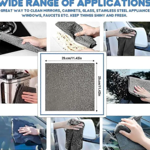 MikrofiberrengöringsdukDen återanvändbara mikrofiberrengöringsduken är gjord av mikrofiber, som har superabsorberande och rengörande kraft. Mikrofiberrengöringsdukar för glas är utmärkta för att ta bort skräp från speglar och fönster utan att lämna märken.Högkvalitativt materialDen förtjockade magiska mikrofiberduken är gjord av mikrofiber, som inte lämnar vattenmärken när du torkar av glaset. Mikrofiberduken är tätt vävd, tjockare och mer hållbar, lossnar inte lätt, är stark på fläckborttagning och repar inte ytan på speglar och glas.Stark vattenabsorptionDen magiska rengöringsduken är återanvändbar, och mikrofiberrengöringsdukarna är lätta, mycket absorberande, snabbtorkande och starka på fläckborttagning, används för olika rengöringsjobb utan att skada ytan.Lätt att användaFörtjockad magisk rengöringsduk, snabbtorkande och lätt att tvätta, mjuk och inte styv. Efter att ha öppnat trasan, skölj den med rent vatten i 2-3 minuter, vrid sedan ur överflödigt vatten (torka inte den), torka sedan av den direkt eller använd en absorberande trasa direkt.Breda applikationerDen ränderfria återanvändbara mikrofiberrengöringsduken kan användas på alla släta, icke-porösa ytor och kan användas vid biltvätt, spegelpolering, glasrengöring, köksrengöring och andra scenarier, ren som ny.
