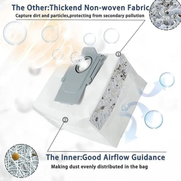 [Kompatibla modeller] Dammsugarpåsarna för S7 MaxV Ultra / S7 Pro Ultra / Q7+ / Q7 Max+ / Q5+. Perfekt ersättning för påsarna. [Premiummaterial] S7 MaxV Ultra dammsugarpåsar är tillverkade med ett höghållfast filterlager av 3-lagers superfint smältblåst fiber och 2-lagers non-woven tyg. Q7+ dammsugarpåse har starka tätningsegenskaper och förbättrad tätningsinloppsöppning och väl förseglad kant. [Säker miljö] Q7 Max+ dammsugarpåse har starka tätningsegenskaper och enkel bortskaffning utan dammoln. Den fångar effektivt upp damm, smuts och skräp och förhindrar att de cirkulerar i ditt hem. [Lätt att installera] Ersättning och installation är samma som tillbehör. Den är kompatibel med dammsugaren. Fästs på för snabb och enkel byte. Det finns inga problem med installationen. [Mycket prisvärt paket] Att byta dammsugarpåsar regelbundet kommer att förbättra dammsugarnas totala prestanda. Obs: Ljusreflektion och olika skärmar kan göra att färgen på objektet på bilden skiljer sig något från den verkliga. Tillåtet mätfel är +/- 1-3 cm.