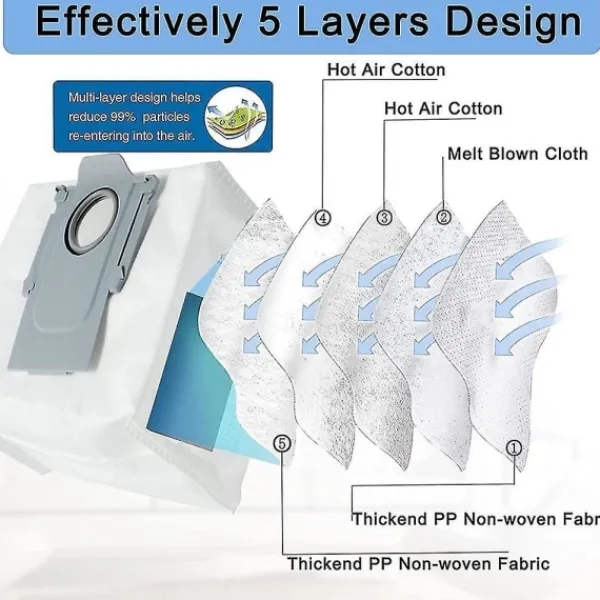 [Kompatibla modeller] Dammsugarpåsarna för S7 MaxV Ultra / S7 Pro Ultra /Q7+ / Q7 Max+ / Q5+. Perfekt ersättning för påsarna. [Premiummaterial] S7 MaxV Ultra dammsugarpåsar är tillverkade med ett höghållfast filterskikt av 3-lagers superfina smältblåsta fibrer och 2-lagers non-woven-tyg. Q7+ dammsugarpåse har starka tätningsegenskaper och förbättrad tätningsinloppsöppning och väl förseglad kant. [Säker miljö] Q7 Max+ dammsugarpåse har starka tätningsegenskaper och enkel bortskaffning utan dammoln. Den fångar effektivt upp damm, smuts och skräp och förhindrar att de cirkulerar i ditt hem. [Lätt att installera] Ersättning och installation är samma som tillbehör. Den är kompatibel med dammsugaren. Fästs för snabb och enkel byte. Det är inget krångel med installationen. [Prisvärt paket] Regelbunden byte av dammsugarpåsar förbättrar dammsugarens totala prestanda. Obs: Ljusreflektion och olika bildskärmar kan göra att färgen på föremålet på bilden skiljer sig något från den verkliga. Det tillåtna mätfelet är +/- 1-3 cm.