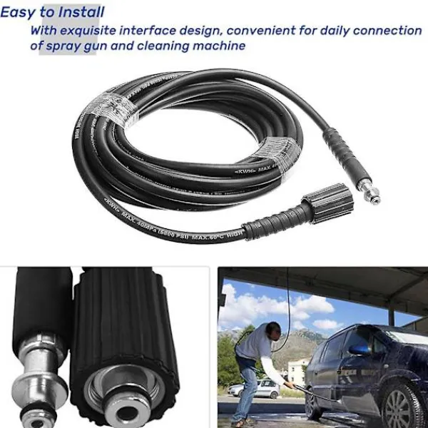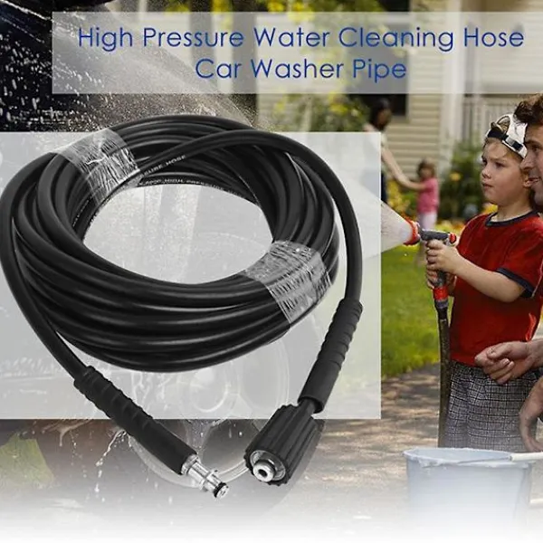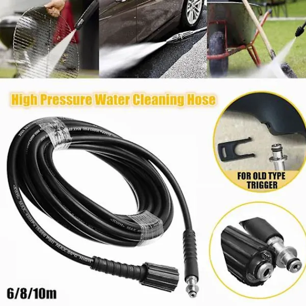 Detta är en högdraghållfast ståltråd flätad högtryckstvättareslang med gummiöverdrag, hållbar i användning.