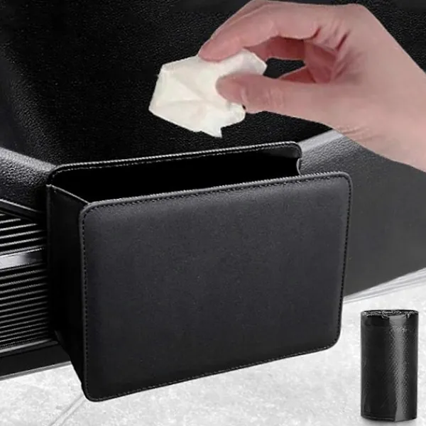 Bilcuvetten har 2 starka krokar som gör att du enkelt kan skjuta in klämman i kanten av din bildörr, baksäte eller mittkonsol. Bilsoptunnor är praktiska för förvaring av papper och nagelband. Bilbehållaren kan också användas som förvaringsbehållare för paraplyer, flaskor, vattenkoppar, näsdukar, leksaker, snacks och andra små nödvändigheter, vilket är bekvämt och praktiskt. Specifikation: