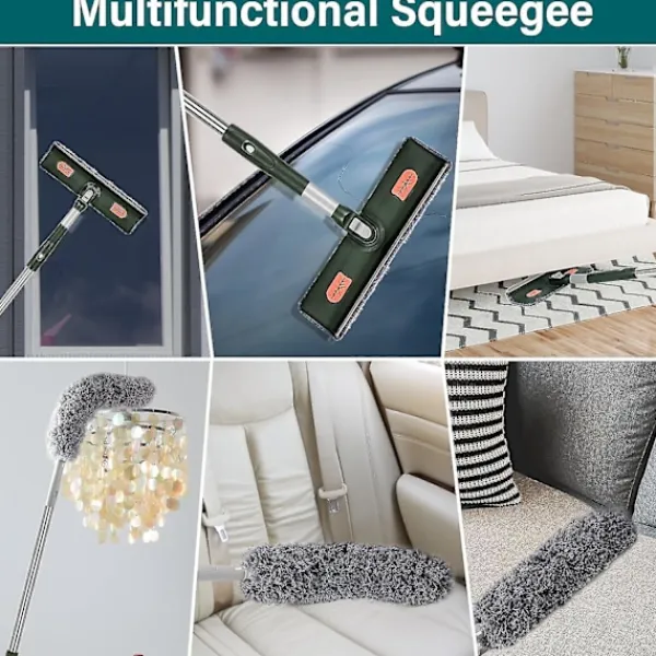 En uppsättning med flera användningsområden Den multifunktionella rengöringsuppsättningen är lämplig för inomhus och utomhus höga fönster, bilfönster, marmorplattor, badrumsväggar, glasdörrar, speglar etc. Det förstärkta och förtjockade rostfria stålskaftet har god stabilitet, du behöver inte oroa dig för skakning när du använder det.