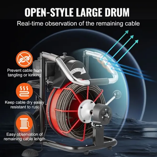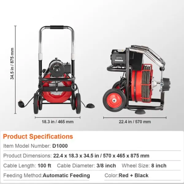 Upptäck DUOKU D1000 avloppsrengöringsmaskin, idealisk för rör på 2″ till 4″. Med en kabel på 30,48 m och en diameter på 3/8 tum erbjuder den automatisk matning och väger 38,3 kg. Dimensioner: 570 x 465 x 875 mm. Perfekt för effektiv och snabb rengöring.