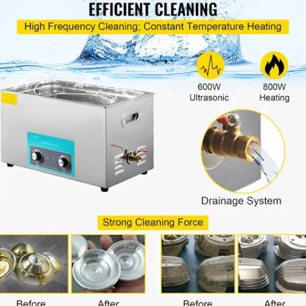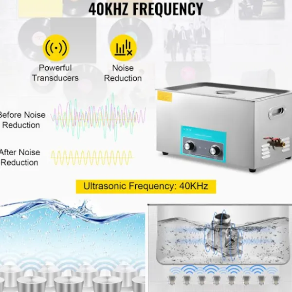 Rengöringskraft: 600W > Ingångsspänning: 220V > Material: Rostfritt stål > Behållarkapacitet: 30 liter > Ultraschallfrekvens: 40 kHz > Uppvärmningsfunktion: Effekt 500W; uppvärmningstemperatur 20-80°C > Produktstorlek (L x B x H): 53 x 33.5 x 34 cm / 20.9″ x 13.2″ x 13.4″ > Arbetstid: 0-30 minuter
