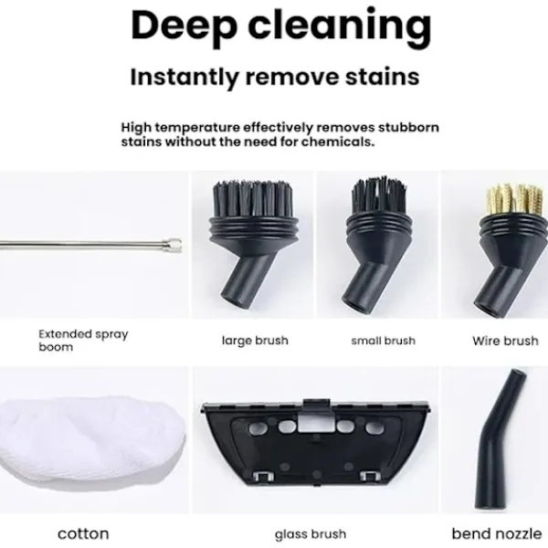 Den 1,2L högtemperaturångrengöraren tar effektivt itu med envis fett, smuts och bakterier, vilket gör den perfekt för djuprengöring av kök, återställning av fogar och mer.