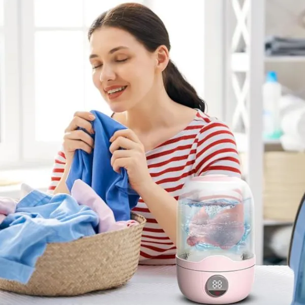 Kompakt & Portabel Design: Lättviktig 1.1L mini-tvättmaskin idealisk för resor, studentboenden och små bostäder.