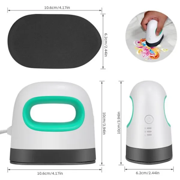 1. Mini Värmepressmaskin, DIY Transferpress med 3 Värmenivåer, Liten Värmepressmaskin för HTV Vinyl, Portabel Värmepress för Kläder, Skor. 2. Mini transferpressen är inte bara lämplig för många värmeöverföringsprojekt, som att trycka tröjor, kuddar, hattar, handväskor, jackor och andra kreativa mönster på ytan, så att du kan njuta av det roliga med att använda värmepressen för DIY, utan också som ett strykjärn i vardagen; det är ett bra val för födelsedag, jul, jubileumspresent till din familj eller älskare. 3. Du kan justera temperaturen på vinylvärmepressen efter dina behov: låg temperatur: 284℉/140℃, medeltemperatur: 320℉/160℃, hög temperatur: 374℉/190℃. Snabb uppvärmning, jämn uppvärmning, tryck bara i cirka 30 sekunder för att slutföra värmeöverföringen. Spetsen på värmeplattan kan överföra vissa små områden termiskt. 4. När minivärmepressen är påslagen kan du välja det temperaturläge du behöver genom att trycka på en knapp. Vänta sedan några minuter, när indikatorlampan ändras från rött till grönt kan du använda den, välj ditt favoritmönster. Tryck sedan på den på din T-shirt, flytta den sedan långsamt några gånger, vänta tio sekunder och du kommer att se att det är din perfekta DIY. 5. Automatisk avstängningsfunktion för din bästa komfort och maximala säkerhet, den stängs automatiskt av när maskinen faller eller efter 15 minuters oavbrutet arbete; säkerhetsbasen kan skydda värmeplattan från repor och förhindra att människor bränns. 6. Paketet innehåller: 1 värmepressmaskin, 1 värmebeständig matta, 1 säkerhetsbas, 1 liten tygpåse och några tecknade klistermärken. Mini värmepressmaskin – Mått: 4,17 x 3,94 tum – Mycket kompakt och lätt att bära. Den är mycket lämplig för att gå ut och bära, och den sparar mer utrymme vid förvaring. 7. Högkvalitativ förpackning: Våra produkter kommer att förpackas noggrant före transport och kommer att vara fall- och kollisionsskyddade för att säkerställa att produkterna du får är i gott skick. 8. Utmärkt service: 24-timmars kundservice, om du inte är nöjd, vänligen kontakta oss. Kontakta oss gärna så svarar vi dig inom 24 timmar.