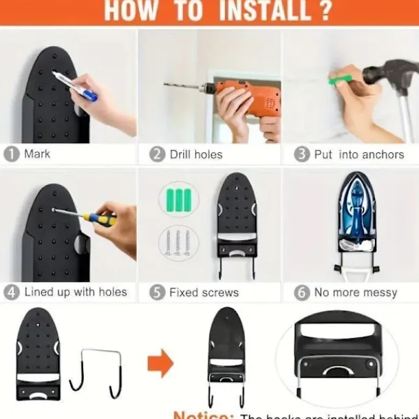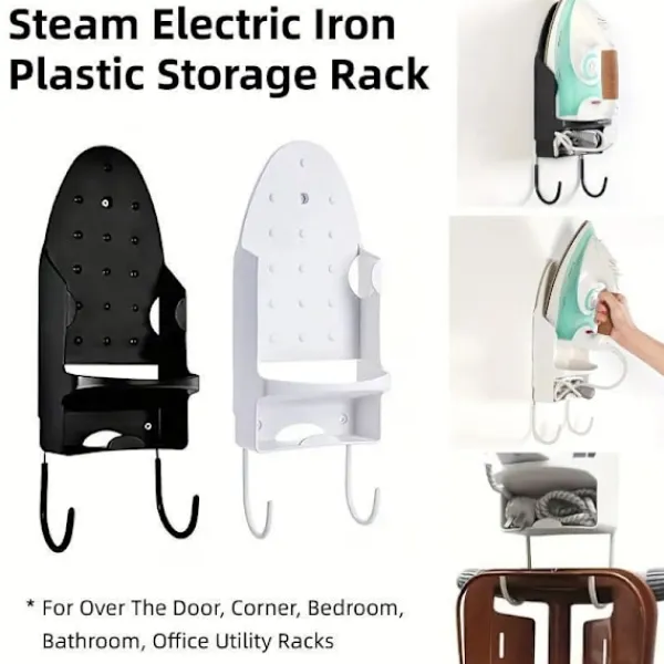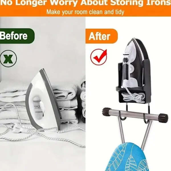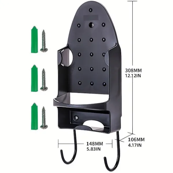 Breddad Förvaringsdesign: Rymmer enkelt olika strykjärnsstorlekar samtidigt som det erbjuder dubbla krokar för sladdar eller ytterligare tillbehör.