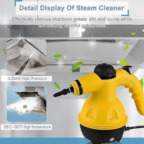 Hög temperatur och trycksattMed 1200W hög effekt för att generera 100-150 hög temperatur, tryckångan upp till 3,0bar, effektivt ta bort envis fet smuts och skadliga ämnen.