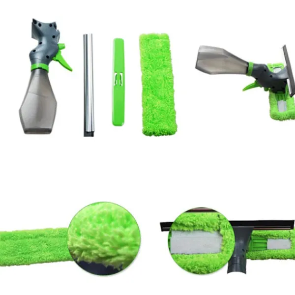 3 i 1 rengöringsverktyg: rengöringsverktyget fönsterputs levereras med en sprayflaska, skrapa och mikrofiberrengöringshuvud