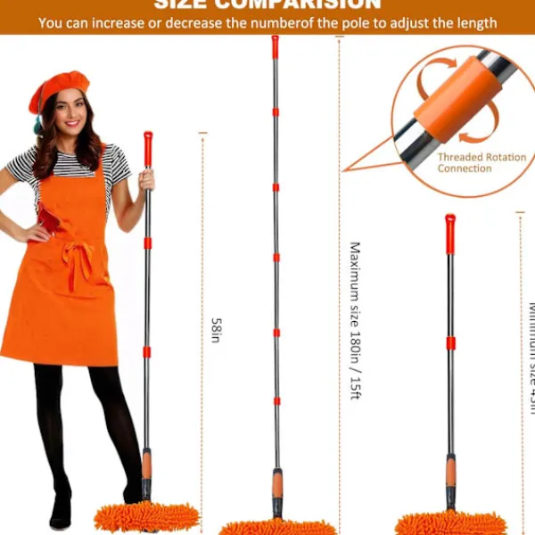 Komplett Dammtorkningskit: Dammtorkningssetet innehåller en 170″/4,3m förlängningsstång, 1 2-i-1 chenille rengöringshuvud, 2 ersättnings chenille huvudskydd. Mångsidig och idealisk för olika rengöringsscenarier, vilket håller ditt hem fräscht och dammfritt. Justerbar Gängad Anslutning: Med en räckvidd från 13,3″ till 14,3m (utan dammtorkhuvud och mänsklig höjd), ger vår dammtork den räckvidd du behöver för att rengöra på vilken höjd som helst, vilket eliminerar behovet av en stege. Med dessa dammtorkar är rengöring på höjd aldrig ett problem (rengöringshöjden kan nå 20ft). Bekvämt och Halkfritt Grepp: Designad med komfort i åtanke, det plasthandtaget har en ergonomisk halkfri design med en hängande funktion som gör greppet enklare och bekvämare. Lätt Tvättbar Dammtork: Tockrop dammtorkar är enkla att ta isär och rengöra. Dammtorkhuvudet kan tas bort från stången, maskintvättas eller rengöras med vatten och hängas på en ventilerad plats för nästa användning. Effektiv Dammtorkning: Oavsett om det gäller höga tak, fönster, ytterväggar, fläktar, ventiler, lampskärmar, apparater, persienner eller bilar, kommer vårt dammtorkningskit att göra ditt hem fläckfritt.
