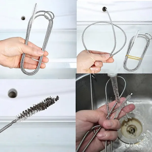 Enkel användning: Om du upptäcker att ditt diskho eller kylskåpsrör är blockerat, mata in den flexibla stammen på rörrengöringsborsten (borständan först) i rörledningen och skrubba försiktigt insidan medan du arbetar borsten tillbaka ut. flexibel men ändå robust trådkropp slingrar sig lätt igenom och går djupt in i alla avlopp.