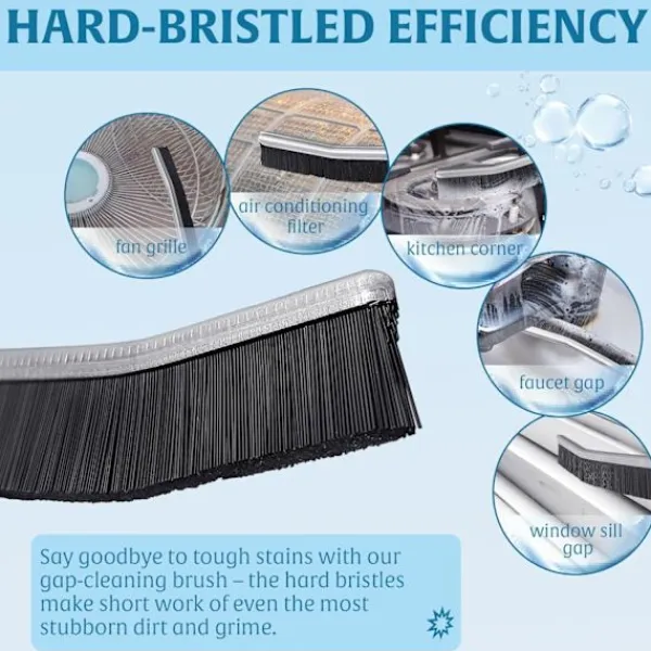 Oöverträffad rengöringskraft: Upplev toppen av rengöringseffektivitet med vår rengöringsborste för springor och glipor. Utrustad med ett robust borsthuvud med hårda borst säkerställer den oöverträffad rengöringskraft. De slitstarka borsten rör om och lossar enkelt envis smuts, så att du utan ansträngning kan skrubba bort även de tuffaste fläckarna och ansamlingarna.