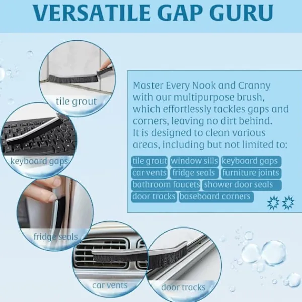 Din allt-i-ett-rengöringskompis: Denna lilla rengöringsborste är ett mångsidigt verktyg som utmärker sig för att tackla svåråtkomliga områden och trånga utrymmen. Oavsett om det är smala glipor, dolda hörn eller djupa springor, är denna rengöringsborste för springor speciellt utformad för att enkelt ta bort smuts, damm och smuts.