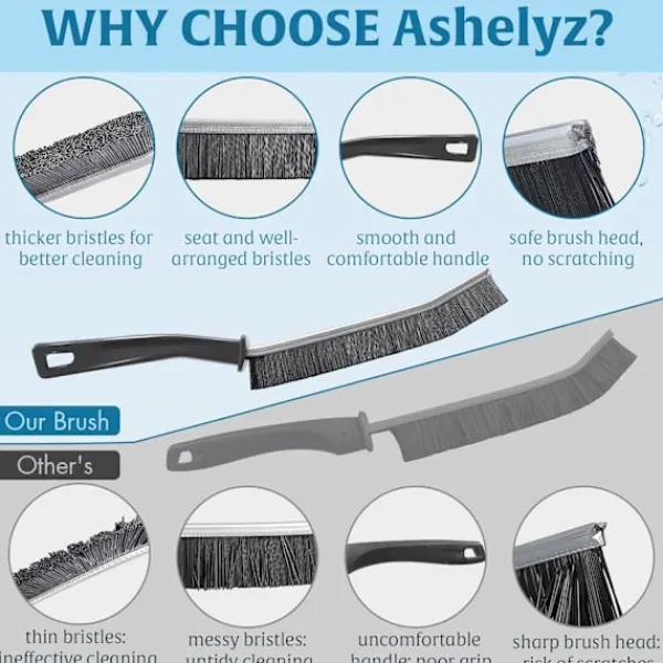 Skonsam men effektiv: Är du orolig för att skada ömtåliga ytor? Var lugn! Vår rengöringsborste med hårda borst är konstruerad för att vara säker att använda på ett brett utbud av material. Från badrumsplattor och köksbänkar till fönsterspår och spår i skjutdörrar, du kan tryggt rengöra utan risk för repor eller nötning.