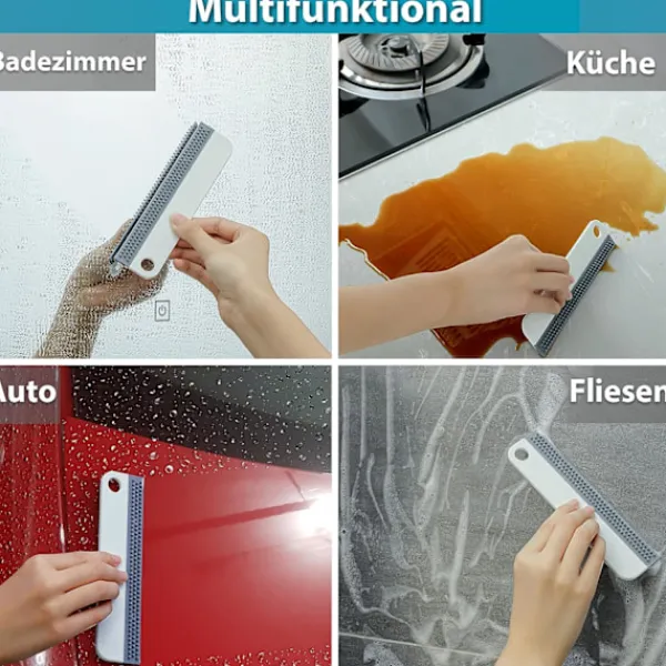 Multifunktionell + strimfri – Denna silikonskrapa för glas tar enkelt bort vatten, skum eller smuts från alla ytor som duschväggar, duschkabiner, handfat, glas, speglar, fönster, kakel, dusch, bil, bilfönster, kök, bänkskivor