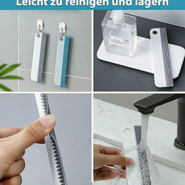 Multifunktionell + streckfri – Denna silikonskrapa tar enkelt bort vatten, tvållödder eller smuts från alla ytor som duschvägg, duschkabin, handfat, glas, speglar, fönster, kakel, dusch, bil, bilfönster, kök, bänkskiva