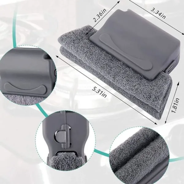 (BRED ANVÄNDNING) – Denna borste kan användas för att rengöra fönsterkarmar, persienner, luftkonditioneringar, kakelfogar, handfat, kranar, badkar, skjutdörrar, duschdörrar, räcken, etc.