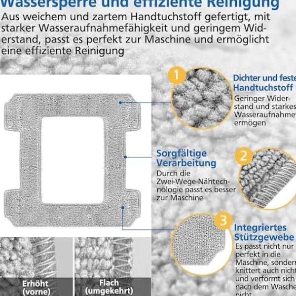 Material av hög kvalitet och vattenabsorptionsförmåga: Våra rengöringsplattor är gjorda av högdensitetsfiberbomull och handdukens material är mer absorberande. I kombination med fönsterputsrobotens fläckborttagningsteknik kan snabb rengöring och snabb torkning uppnås. Rengöringsplattan luddar inte bomull, vilket kan leda till suddiga fönster
