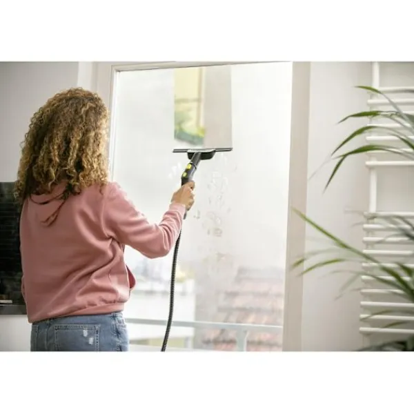 Monterad på ångrengöraren gör fönstermunstycket att du enkelt och utan ränder kan rengöra glasytor. Detta breddar användningsområdet för Kärchers ångrengörare och säkerställer samtidigt fläckfri rengöring av fönster och glas.