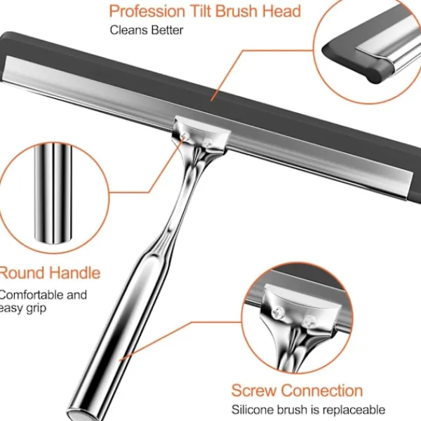 【Flera användningsområden】Rostfria duschrakaren är utmärkt för att ta bort droppar vatten eller smuts från släta ytor, perfekt för fönster, badrumsdörrar, kakel, golv, glas, bilfönster och speglar, lämplig för dina hushållsrengöringsverktyg.