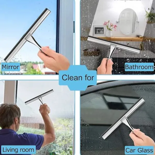 Beskrivning [Högkvalitativt material] Skrapan är tillverkad av 304 rostfritt stål, gjuten med utsökt hantverk, vetenskaplig och hållbar, vattentät och rostfri. 【Effektiv och praktisk】 Den platta och mjuka gummiskrapan repar inte glaset, rengöringen är snabb och enkel och tar effektivt hand om släta ytor. [VID ANVÄNDNING] Duschskrapan är idealisk för att ta bort vattendroppar på släta ytor som speglar, glas, kakel och bilrutor. 【T-formad design】 Duschskrapa Detta är ett böjt handtag, designat för att passa formen på den mänskliga handflatan, bekvämare att hålla och minimera handtrötthet. 【Bekväm förvaring】 Duschskrapan är utrustad med en metallkrok, inget behov av att borra hål, lätt att förvara, hänga och torka snabbt, vilket sparar utrymme.