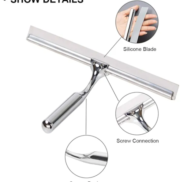 【Bästa kvalitet】 Duschskrapan är tillverkad av premium rostfritt stål och garanterat inte rostar; Hållbart, flexibelt silikonskrapeblad håller länge och ger en ren och smidig torkning över glaset.