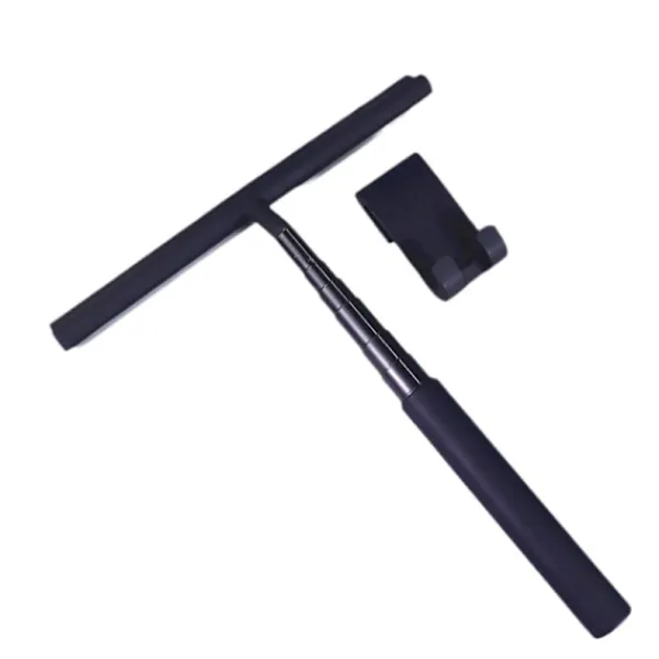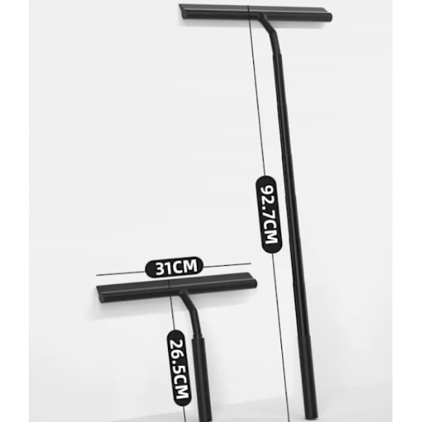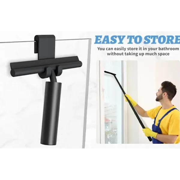 Infällbar duschskrapa svart: Den mjuka silikonremsan tar effektivt bort vattenfläckar utan att lämna ränder, skadar inte den rena ytan och säkerställer en jämn glidrörelse. Idealisk för garagegolv, badrumsplattor, fönster, glas och mer.