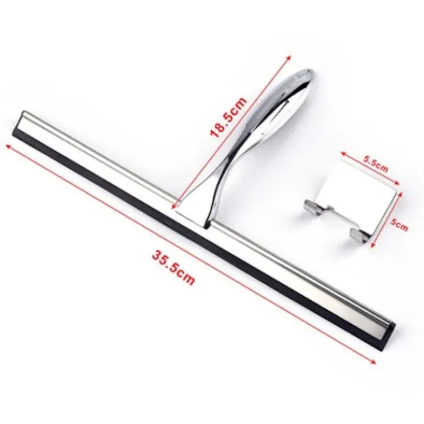 Duschtorkare, hushållstorkare i rostfritt stål för badrumsfönstertorkare, multifunktionsrengöring med krok Stil: 35,5 cm + fyrkantig klisterkrok. T-formad design: Tillverkat av zinklegering och rostfritt stål, handtaget är bekvämt att hålla, halkfritt och minskar handtrötthet. Slitstark silikonläpp: Tillverkad av högkvalitativt gummi, varken för hårt eller för mjukt,