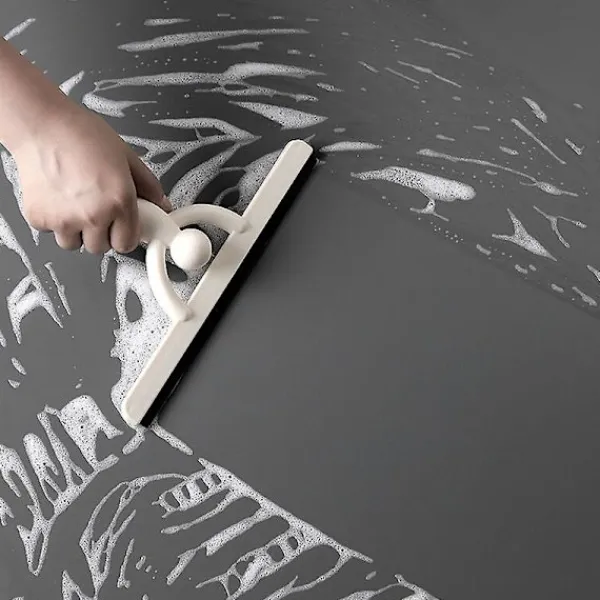 Torkar vatten på fönster och duschdörrar, för att undvika kalkavlagringar.
