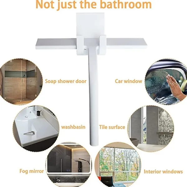 PRAKTISK FÖRVARINGMed en krok kan den hängas direkt på dörren eller glaset med en tjocklek på mindre än 1,2 cm. Lättare att rengöra och fastare än sugkoppar. . MÅNGSIDIG RENGÖRINGSRENGÖRAREMultifunktionell skrapa är perfekt för rengöring av fönster, duschdörrar, bilvindrutor, kakel, immiga speglar, glas, bänkskivor, uteplatser och mer plana eller vågiga ytor, etc. Gör ditt liv enklare. . ERGONOMISK DESIGNEn design i ett stycke gör den mycket bekväm att hålla i handen, den är särskilt bekväm att använda och den kan rengöras enkelt och effektivt. . EFFEKTIV RENGÖRINGTillsätt bara vatten och rengöringsmedel på en yta med några torkningar och det ger dig en orörd glans utan att lämna några ränder. Den lätta designen förhindrar också att din arm blir trött snabbt. . HÅLLBART MATERIAL Duschskrapan är tillverkad av högkvalitativ silikon, som inte är rostig, stabil och hållbar, minskar buller och skadar inte dyra fönster eller speglar. .