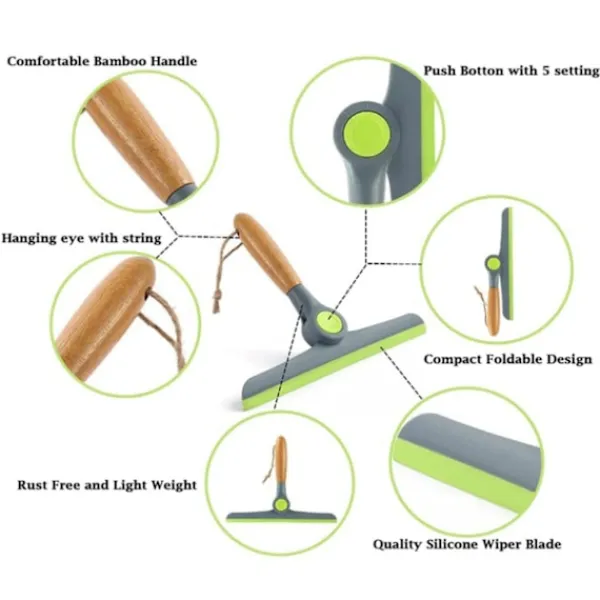Platsbesparande: Till skillnad från andra skrapor är vår duschskrapa hopfällbar och utrustad med öljetter borrade med snodd, den tar inte mycket plats när den förvaras, perfekt för utomhus- eller hemmabruk.
