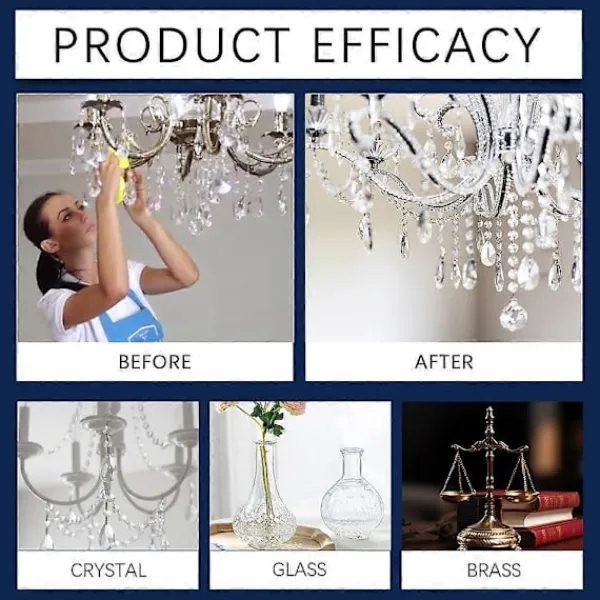 TIDSBESPARANDE LÖSNING: Spara tid och ansträngning med denna snabba och effektiva rengöringsspraylösning för ljuskronor. Idealisk för upptagna husägare, professionella städare och alla som vill underhålla sina ljuskronor med minimalt krångel..
