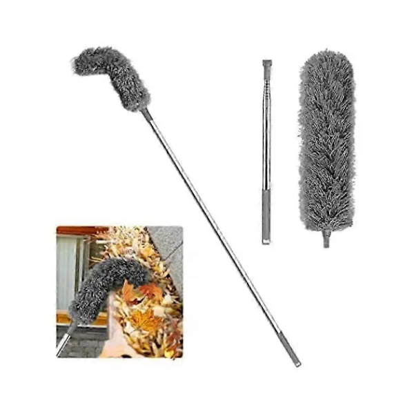 Teleskopstången kan förlängas från 0,6 meter till 2,5 meter, vilket gör det enkelt att nå takrännan och fälls ihop tillräckligt kort för enkel förvaring.