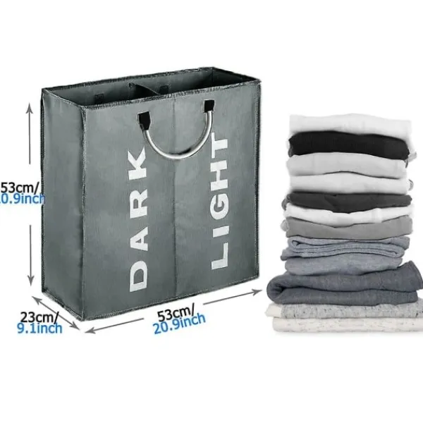 Material: Oxfordduk Färg: ljusgrå Utökad storlek: 53*53*23cm Vikstorlek: 24*26*3cm Antal: 2st Förpackningsinnehåll: 2*Klädpåse med stor kapacitet 1. En idealisk hjälpmedel för familjen 2 fack för att skilja ljusa kläder från mörka (ca 1 – 2 laster per sida). Den tar hand om dina sysslor med lätthet, och du behöver aldrig bära två separata korgar upp och ner för trappan. 2. Lätt att bära Design med vadderade handtag gör den lätt att transportera utan fysisk belastning på tvättdagen. Du kan bära den för hand eller till och med med armbågen, eftersom den är tillräckligt tjock för att inte skada din arm 3. Vikbar för att spara utrymme Den är också hopfällbar för att förvaras i linneskåpet vid de sällsynta, tvättfria tillfällena och ta upp en nästan försumbart utrymme (53x2353CM). 4. Stå själv Med tjockt tyg kan den stå upp när den är tom eller full med kläder. Det förblir snyggt varje gång och överallt. OBSERVERA: När du får din älskade tvättkorg kan den vara lite deformerad på grund av transport, så att sedan stå ensam under en tid, den kommer att återgå till sin form. 5. Perfekt present Detta är en särskilt välkommen gåva till någon på college eller som reser mycket, och berätta högt för dem att du bara behöver torka av den med en våt trasa om det behövs. (zhongchengdaye)