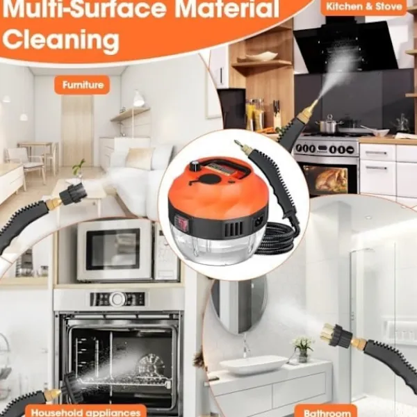 2500W Portabel ångrengörare – Högtrycksånga, 2000ml tank, justerbar ångtemperatur, med 3 borsthuvuden