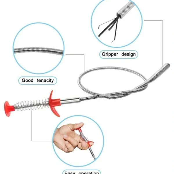 Utmärkt längd: mått (blått handtag, rostfri vattenorm: 107 cm, rött handtag, rostfri duschorm: 60 cm, plastborste med flera tänder: 51 cm), finns i tre storlekar, de är tillräckligt långa för att sätta in djupa rör, håll röret från öglan, ta enkelt bort pluggen.