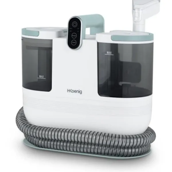 Återge liv åt alla dina textila ytor med handdammsugaren TWT88 från H.Koenig. Med en effekt på 1200 W och 3 borstar kan apparaten spruta kallt och varmt vatten upp till 60°C på dina ytor för att rengöra dem och suga upp vattnet omedelbart. Tack vare det ergonomiska handtaget kan du själv välja vattenflödet. Denna dubbla funktion gör det möjligt att effektivt rengöra maskor och fibrer i dina textilier: madrasser, mattor, soffor, osv. För optimal rengöring kan du använda ett tvåltillsats, såsom diskmedel eller Marseille-tvål. För envisa fläckar kan du även applicera ett rengöringsmedel på ytan innan användning. Ingen smuts kommer att stå emot dig! De avtagbara tankarna för rent och smutsigt vatten förenklar fyllning, tömning och rengöring. De förvaringsutrymmen som finns för borsten, slangen på 1,8 m och elsladdarna säkerställer också en bekväm användning. Kompakt, TWT88 har ett transporthandtag som underlättar förflyttning. Återskapa ett nytt utseende på dina textilytor på kort tid och med lite ansträngning tack vare TWT88. Egenskaper: Kapacitet för rent vattentank: 1600 mL Kapacitet för smutsigt vattentank: 950 mL Vattenflöde: 250 mL/min Avtagbar vattentank Avtagbar borste Slangens längd: 1,8 m Strömkabel: 5 m Förvaring för elsladdar Tillbehör: 3 borstar och en slangrengörare Effekt: 1200 W Vattentemperatur: upp till 60°C 2 nivåer av sugkraft