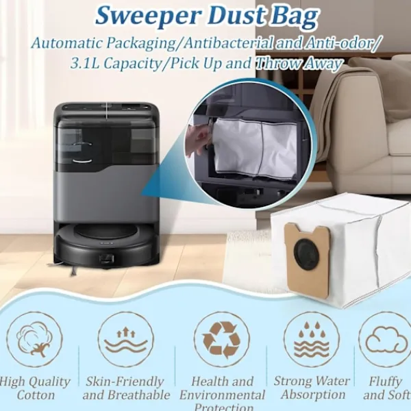 Stor kapacitet: Med en generös kapacitet på 3,1 liter minimerar dessa dammpåsar frekvensen av byten. Detta är särskilt praktiskt för större hem eller hushåll med betydande damm- och skräpaccumulation. Den utökade kapaciteten möjliggör längre rengöringssessioner utan avbrott, vilket sparar tid och ansträngning. Njut av bekvämligheten med mindre frekventa påsbyten och en effektivare rengöringsrutin, vilket säkerställer att din Eufy Omni C20 robotdammsugare alltid är redo att ta itu med alla typer av smuts.