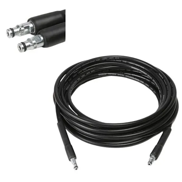 Karcher K2-K7-kompatibilitet: Speciellt utformad för att vara kompatibel med Karcher K2-K7-seriens trycktvättar, erbjuder denna slang en sömlös ersättning eller uppgradering för din befintliga utrustning. Beslagen är precisionskonstruerade för att säkerställa en säker och läckagefri anslutning, vilket maximerar rengöringseffektiviteten. Njut av bekvämligheten med en direkt passform utan behov av adaptrar eller modifieringar, vilket sparar tid och ansträngning.