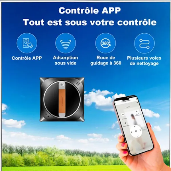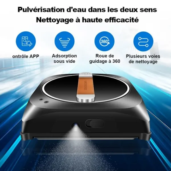 Robotfönstertvättaren Liectroux YW910 erbjuder en dubbel sprayfunktion och en 100 ml tank. Den rengör effektivt fönster utan ram tack vare sin appkontroll. Med 3 automatiska lägen och återgång till startpunkten garanterar den en snabb och säker rengöring.