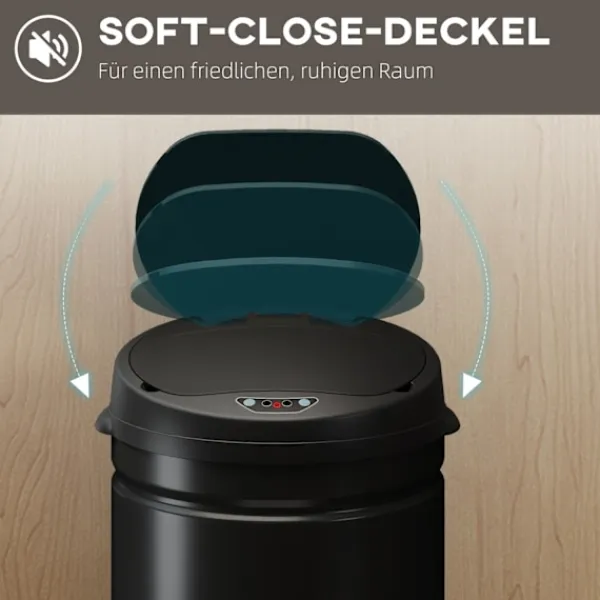 - Fungerar med ett mjukstängande lock, som förblir öppet i 5 sekunder innan det stängs ljudlöst.